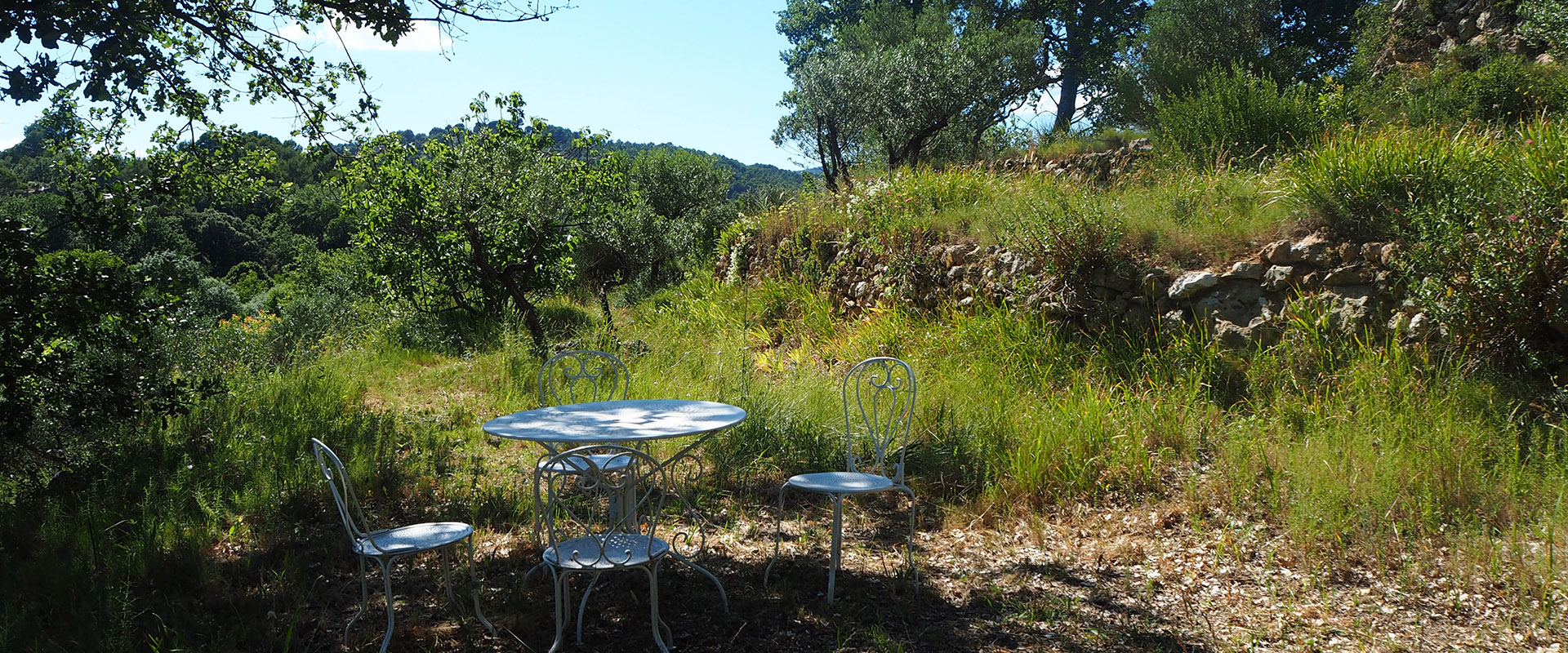 Appartement indépendant avec terrasse privée, au dernier étage du Mas de la Bauquière, vue dégagée jusqu'au massif des Maures.